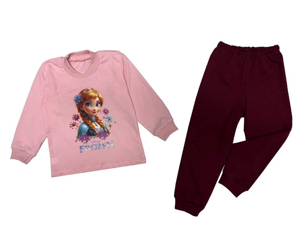 Піжама дитяча для дівчинки демісезонна рожева з яскравим малюнком Анни з мультфільма Холодне серце. Вироб пошито з ткани інтеплок яка дуже приємна на дотик.