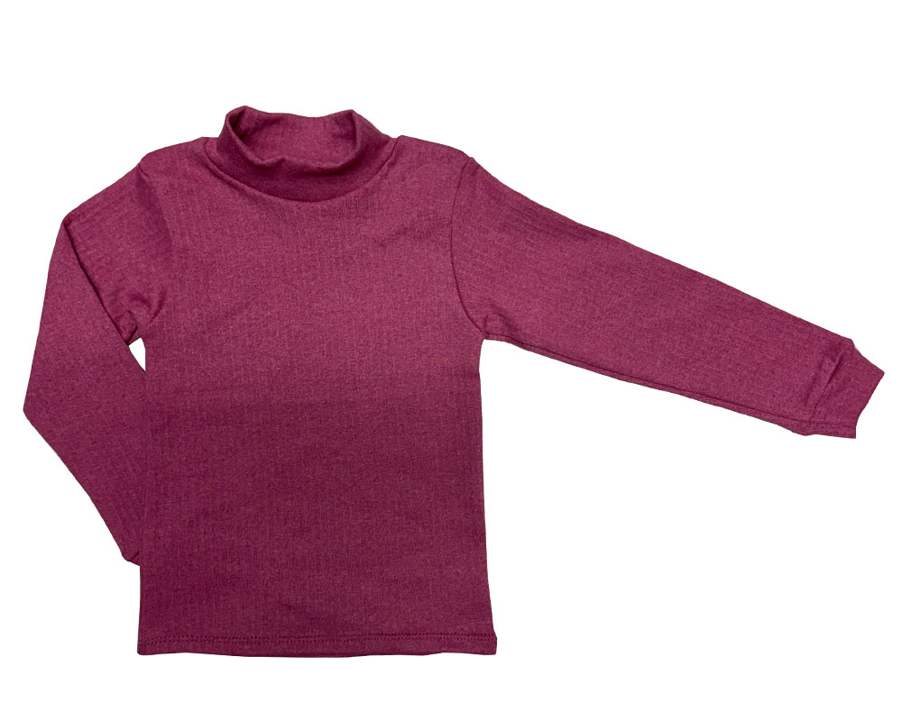 Дитячий лонгслів з коміром -стійка для дівчинки малинового кольру, зовні гладенький, з внутрішнього боку на флісі.