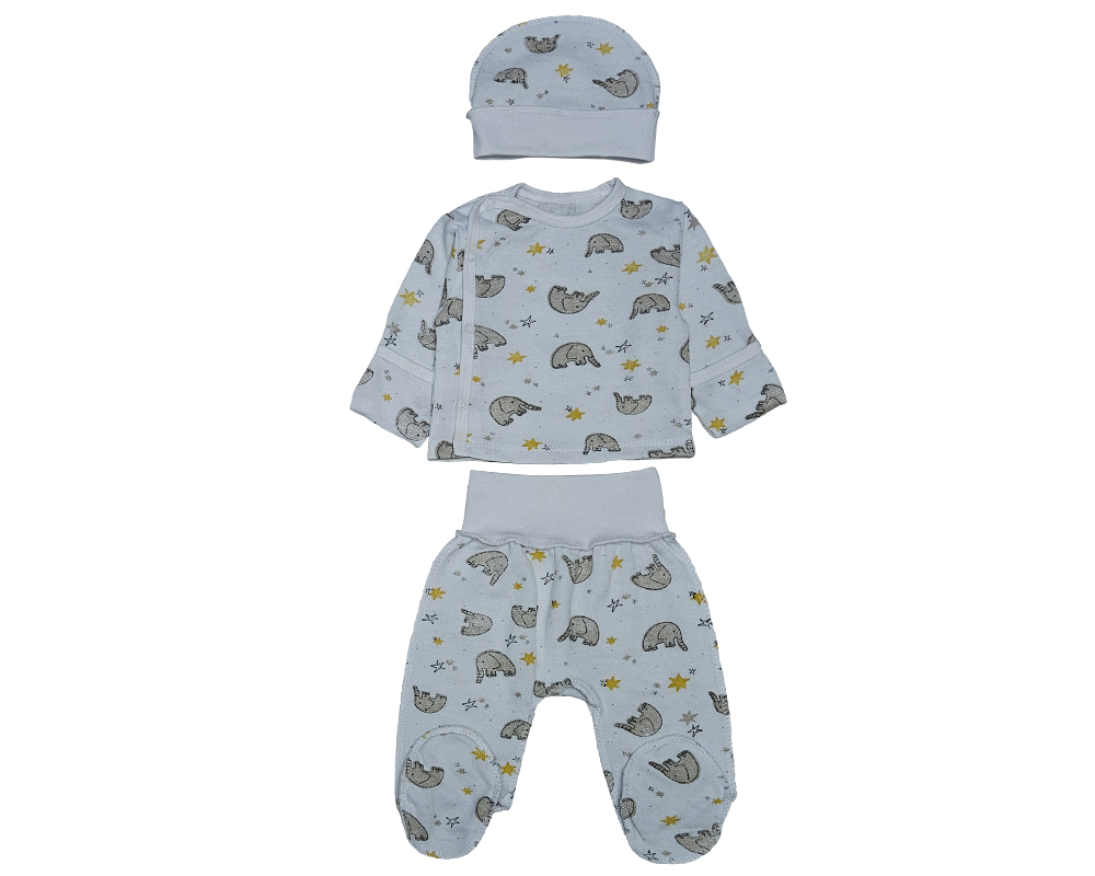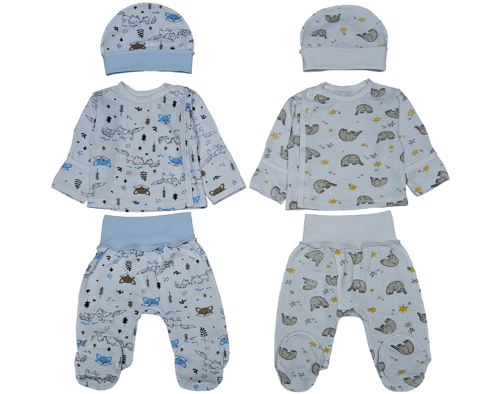 Недорогий набір ясельний, що складається з кофтинки, подряпини+європовзуни+шапочка на манжеті. Комплект пошитий з теплої трикотажної тканини футер, яка має всередині м'який теплий пушок. Склад 100% що означає добре зігрівати.