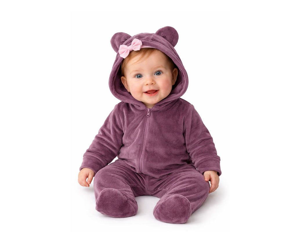 Милий дизайн: Капюшон з вушками зробить кожне фото вашого малюка незабутнім. Максимальний комфорт: Тканина дихає, але при цьому відмінно зберігає тепло, . Практичність: Міцний велюр витримує багаторазове машинне прання, не втрачаючи форми та кольору. Зручність: Застібка-блискавка дозволяє швидко змінити підгузок або переодягнути дитину, не завдаючи їй дискомфорту.