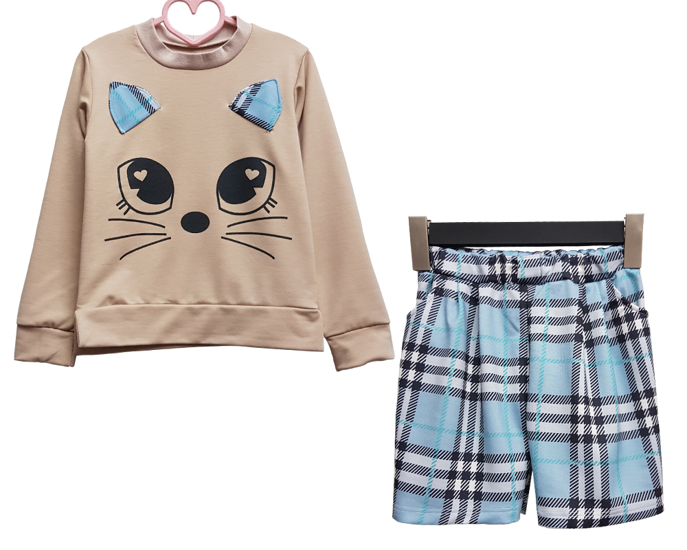 Літній легкий комплект для дівчинки, що складається з футболки вільного крою, оверсайз персикового кольору прикрашена малюнком по переду та спинці і шорт яскравого забарвлення, що відмінно поєднуються за кольором з футболкою. Шорти пошиті з трикотажної тканини двонитка, а футболка зі стрейч-куліру до состів якої входить 95% бавовни та 5% еластан. Тканина відмінної якості, пропускає повітря, не линяє, не утворює катишки, добре постує.